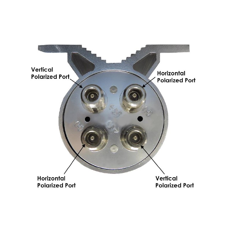 Esta antena de calidad profesional cuenta con cuatro puertos de antena N-Female integrales, y se suministra con cables de radio N Male a N Male de baja pérdida. Todos los puertos admiten el funcionamiento de 4.9 GHz a 6.5 GHz. La resistente cúpula resistente a la intemperie está sujeta a una base de aluminio extruido para trabajo pesado. El soporte se puede fijar a un poste mediante los pernos en U incluidos o a una superficie plana mediante tornillos.