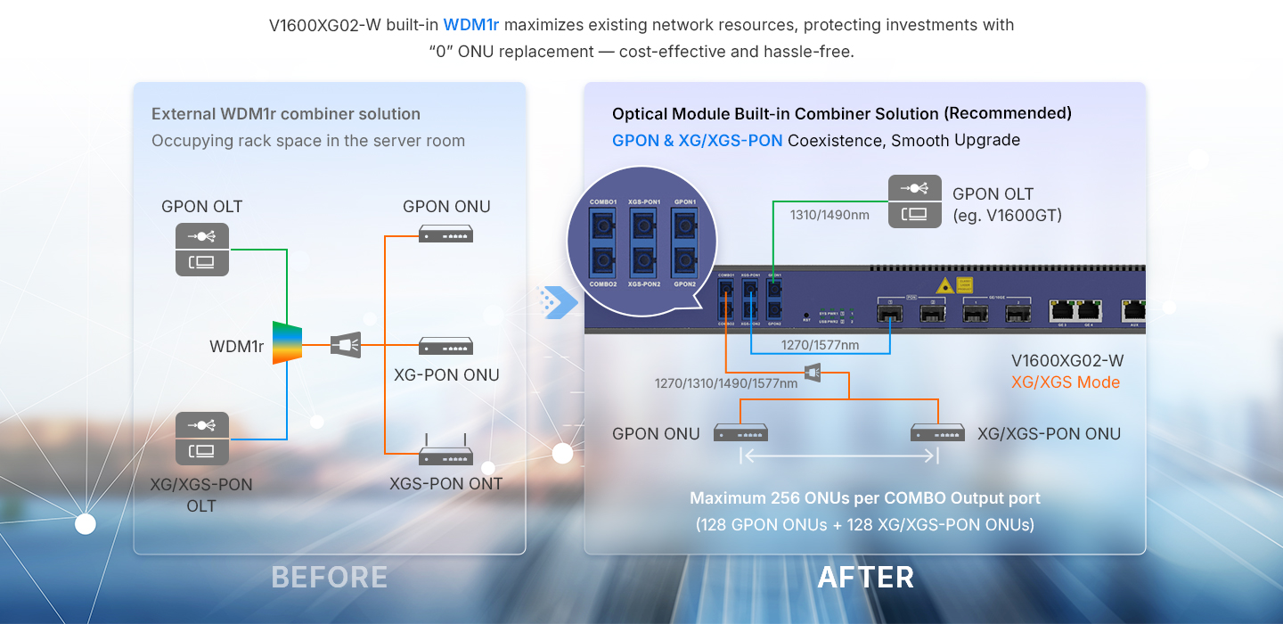 2 PON Port GPON/XG/XGS-PON OLT, WDM1r